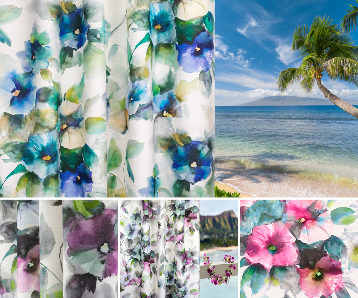 This week we received the first sample collection in our showroom, Fibre Naturelle’s latest fabric range launch; the Spring/Summer 2018 collection. Composed of 6 different fabrics; two modern printed velvets, two versatile plains, a floral printed cotton & a stunning faux silk. Together the fabrics, Hana, Tulipa, Cambridge, Linden, Hawaii & Mistral create the perfect Spring/Summer fabric collection, suitable for any style of home. The versatility of this range means that the collection includes fabrics suitable for not only curtain and blind usage, but also for upholstery and accessories.